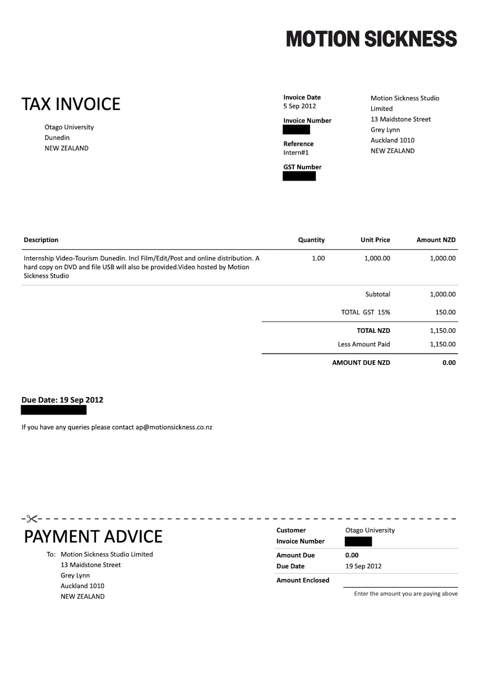 our first invoice